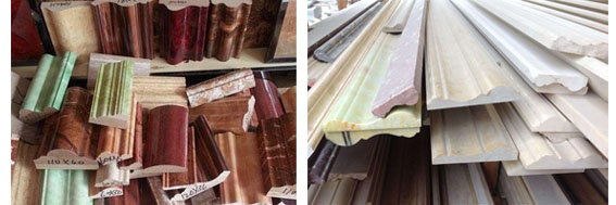 One whole PVC+stone composited profile production line includes auto feeder, extruder, mould, vacuum forming table, hot stamping machine, haul off unit, auto cutter and stacker.